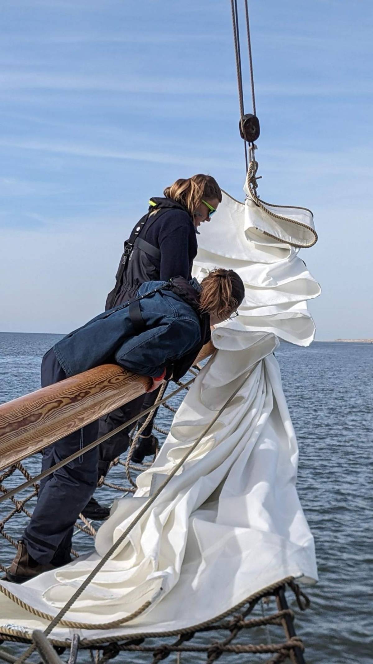 Der Matrose wirft die Leinen los und wer will, hilft mit, die Segel zu hissen. Die Schoten werden mit einem Achtknoten belegt und wir fahren auf’s Wasser hinaus. Ohne einen Tropfen Diesel, in aller Stille, nur durch die Kraft der Segel. Ein Naturwunder. Vielleicht nutzen Sie die Gelegenheit und machen -stolz am Ruder stehend- ein Selfie für Ihren Desktop?