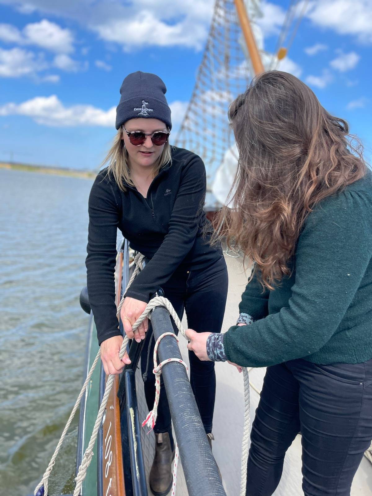 Der Tag beginnt mit einem ausgiebigen Frühstück. Danach erklärt der Matrose anhand einer Kreidezeichnung an Deck, wo sich die unterschiedlichen Segel befinden und wie diese heißen. Fock, Besan, Großsegel und Klüver. Auch Begriffe wie Fall, Schot, Belegen auf einer Klampe und Schwert fallen. Denn ein echter Seebär möchte diese natürlich lernen, um in vollen Zügen am allabendlichen Seemannsgarn mitzuspinnen .