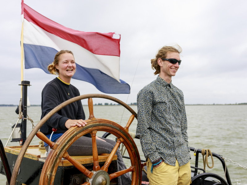 Wie in alten Zeiten wird die Kleine Jager nicht mit einem Steuerrad, sondern mit einer Pinne gelenkt. Es ist ein einzigartiges Erlebnis, dieses Plattbodenschiff mit den Händen an der Pinne durch die Wellen zu lenken. Ob Sie nun auf dem Wattenmeer, dem IJsselmeer oder durch Friesland segeln, es ist immer ein Vergnügen. Die Sicherheit steht immer an erster Stelle. Skipper Kars Petri legt deshalb großen Wert darauf, den Umgang mit dem Rigg, den Fallen und den Schoten zu erklären. Auf angenehme Weise sorgt er dafür, dass jeder mit dem Schiff vertraut wird. Sie brauchen keine Segelerfahrung, um aktiv teilzunehmen.