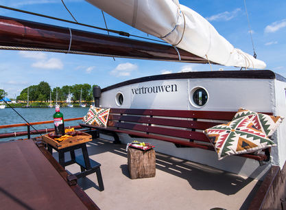 Den Segeltörn kann man an Deck von der „Vertrouwen“ hautnah erleben. Sie können beim Segelsetzen und Steuern mithelfen und beteiligen sich an der Routenplanung. Oder lassen Sie einfach die Seele baumeln, genießen Sie entspannt das Zusammensein, den Wind, die Sonne, die Aussicht. Suchen Sie sich auf dieser schönen Tjalk ein lauschiges Plätzchen mit einem Loungekissen an Deck oder in der Plicht. Lassen Sie es sich einfach gut gehen! Die Schiffseigner sind leidenschaftliche Segler und zeigen Ihnen gerne die Tricks, Kniffe und Knoten der Profis.