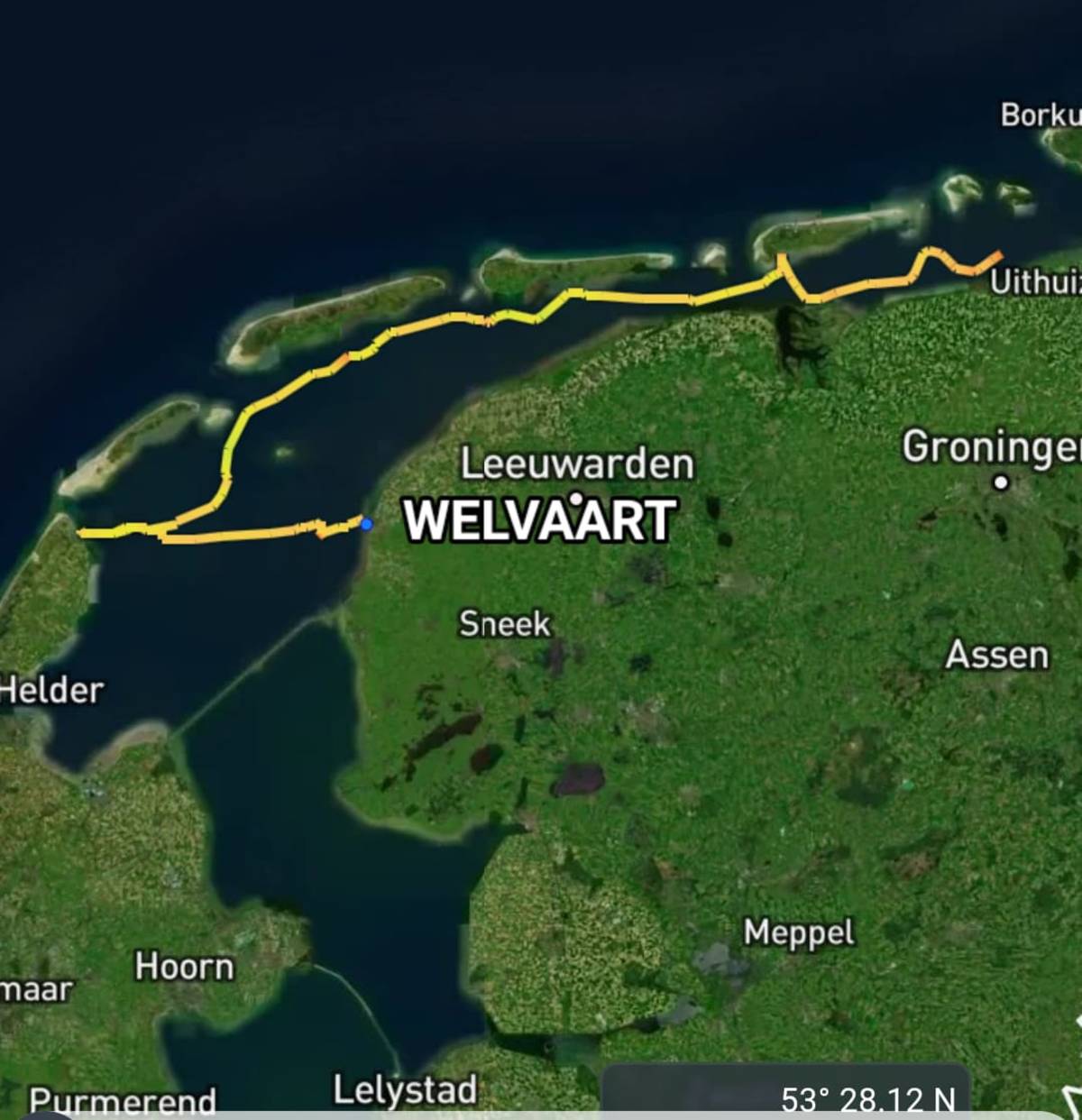 Die Welvaart berührte als zweites Schiff die Boje bei De Cocksdorp und segelte anschließend ostwärts, ließ Vlieland und Terschelling zunächst an Steuerbord liegen.