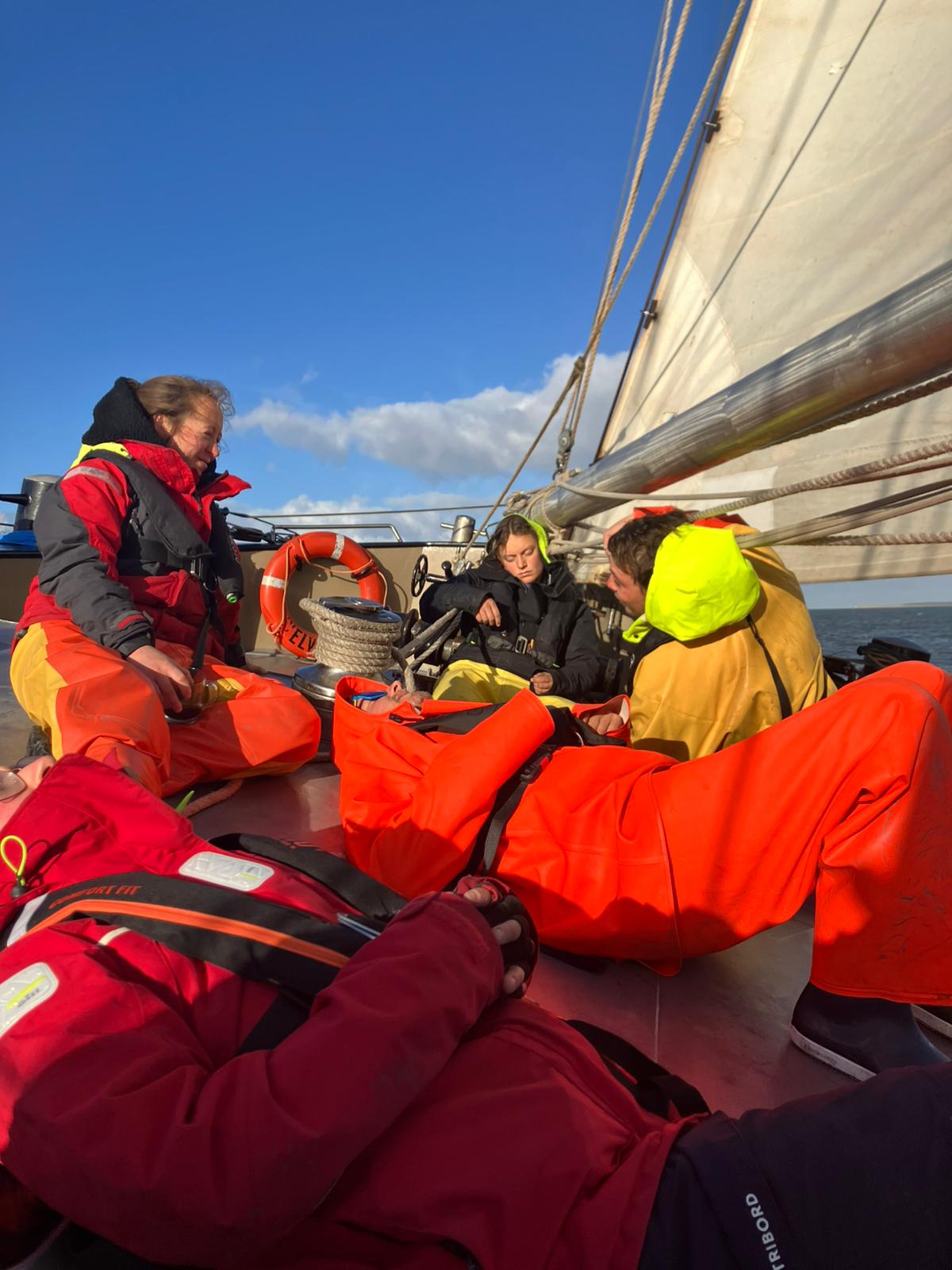 Die Nacht war hart – viel Wind, schlechte Sicht und ständige Arbeit an Deck. Trotzdem erreichte die Welvaart in den frühen Morgenstunden des Dienstags, gegen vier Uhr, Noordpolderzijl. Dort fiel der Anker für genau acht Minuten. Danach begann der Rückweg – gegen den Wind. Durch schmale Priele und Untiefen musste alles hart erkämpft werden, Schlag um Schlag.